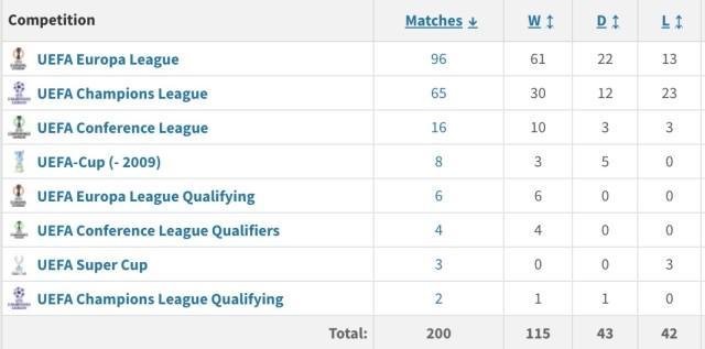 歐聯(lián)杯第2輪,阿斯頓維拉2比0客勝費耶諾德,在開季6場不勝后,最近3連勝強勢反彈,前2勝包括歐聯(lián)杯1比0博洛尼亞、英超3比1富勒姆。 這是維拉主帥埃梅里執(zhí)教生涯第200場歐戰(zhàn)比賽,取得115場勝利,贏得4次歐聯(lián)杯冠軍。2023-24賽季維拉重返歐戰(zhàn)以來,埃梅里率隊贏得16場歐戰(zhàn)勝利,同期只有皇馬(19勝)、巴黎(18勝)和拜仁(17勝)更多。 與此同時,范佩西執(zhí)教的費耶諾德歐聯(lián)杯開局2連敗,自2017-18賽季歐冠以來首次歐戰(zhàn)開局2連敗,隊史首次歐戰(zhàn)前2場0進球。
